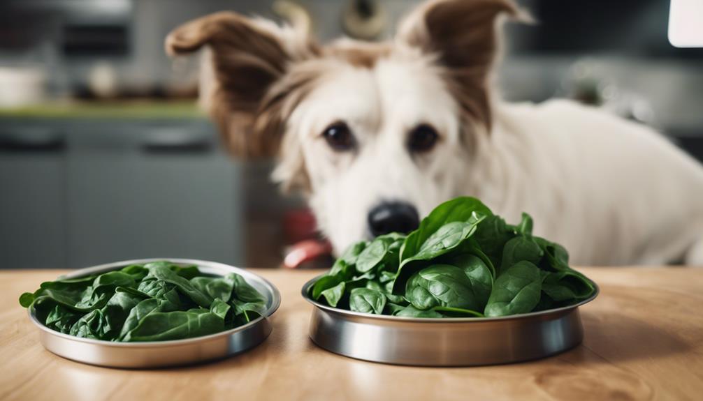 You're considering adding spinach to your dog's diet, and rightly so, as this nutrient-dense superfood packs a punch with its rich vitamins, minerals, and antioxidants. Spinach provides essential nutrients like iron, vitamins, and roughage, making it a healthy addition in moderation. However, high oxalic acid content can block calcium absorption, so cooking spinach is key to reduce this risk. Feeding spinach in moderation, about 1/4 teaspoon per 10 pounds of body weight daily, is essential to reap its benefits while minimizing risks. To learn more about safely integrating spinach into your dog's diet, continue exploring the benefits and preparation methods.